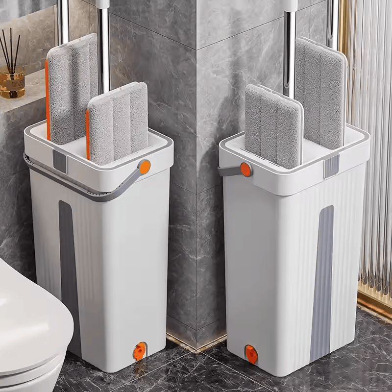 Système de Lavage et d’Essorage Séparé : Le seau à double compartiment permet de laver et d’essorer la vadrouille sans contact manuel avec l’eau sale.